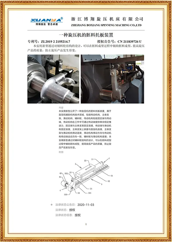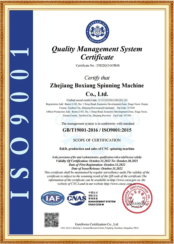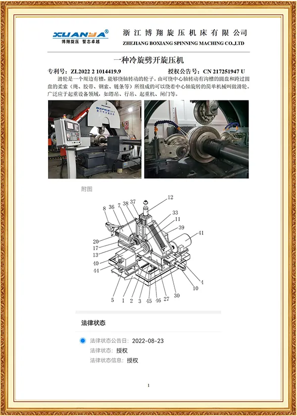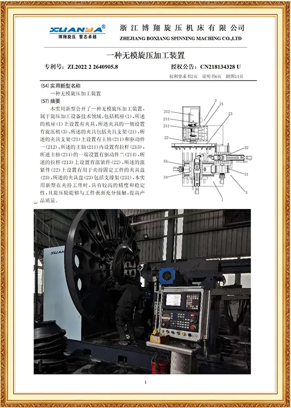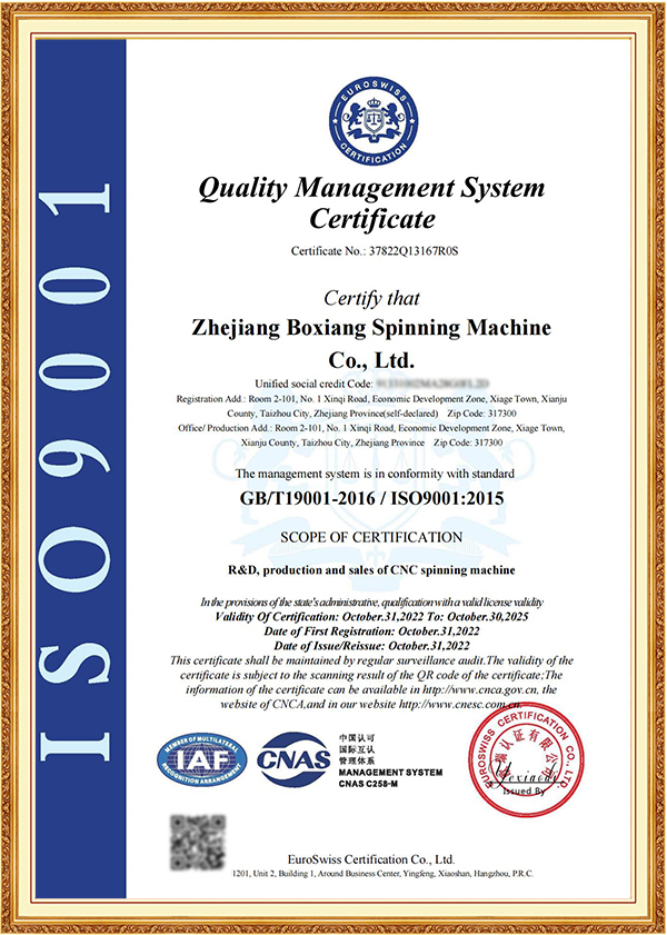 Zhejiang Boxiang Spinning Machine Tool Co., Ltd. officially established the "Zhejiang Boxiang Spinning Technology R&D Center" in 2022, covering an area of more than 2,000 square meters, with more than ten machine models including QX high-speed spinning, PX single spinning, double-wheel high-speed spinning, shrinking hot spinning, etc. It is used for spinning machine application research, spinning technology process research, spinning technology training, etc.